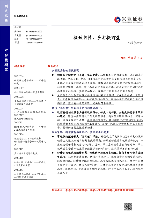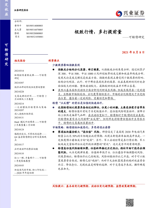 【兴业证券】【20210808】可转债研究:极致行情,多打提前量-23页