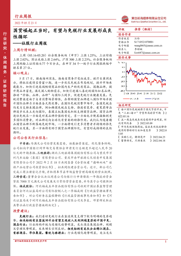 【东亚前海证券】【20220523】社服行业周报:国货崛起正当时,有望与免税行业发展形成良性循环-16页