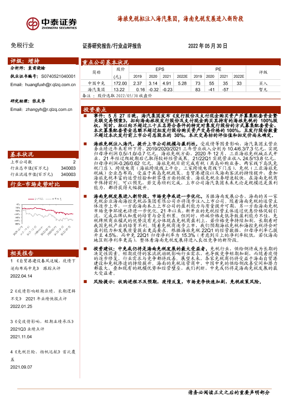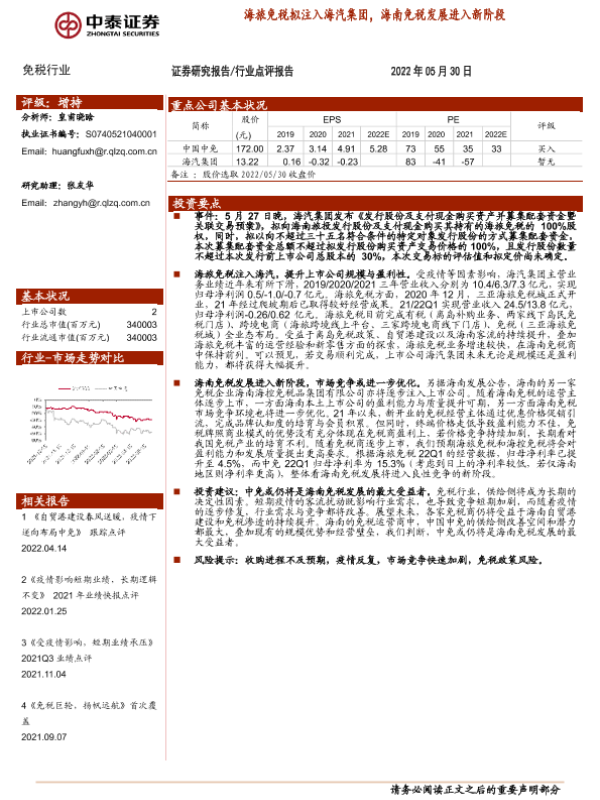 【中泰证券】【20220530】海旅免税拟注入海汽集团,海南免税发展进入新阶段-2页