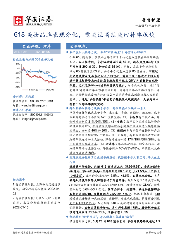 【华安证券】【20220605】618美妆品牌表现分化,需关注高缺失回补率板块-15页