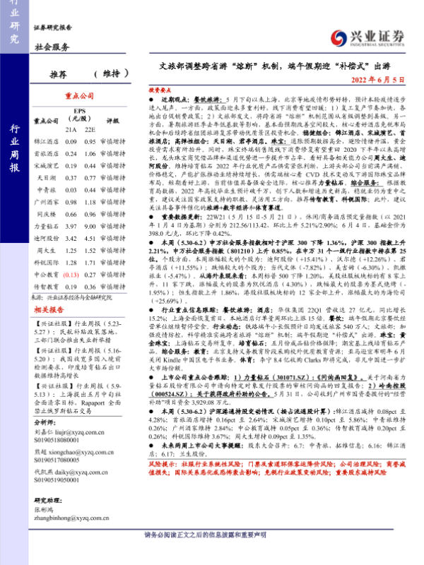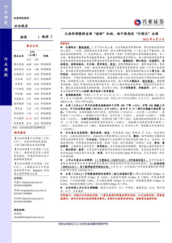 【兴业证券】【20220605】文旅部调整跨省游“熔断”机制,端午假期迎“补偿式”出游-15页