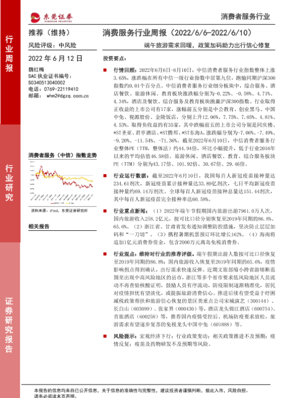 【东莞证券】【20220612】消费服务行业周报:端午旅游需求回暖,政策加码助力出行信心修复-10页