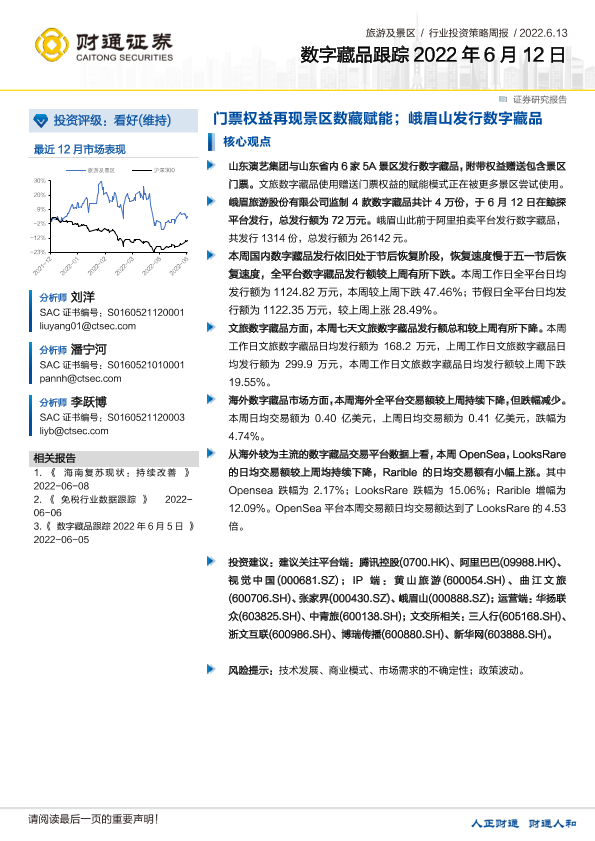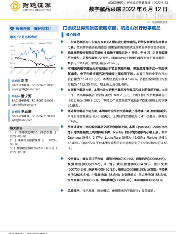 【财通证券】【20220613】旅游及景区行业投资策略周报:数字藏品跟踪-门票权益再现景区数藏赋能-11页