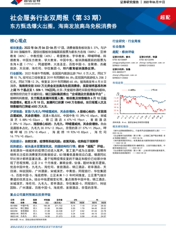 【国信证券】【20220619】社会服务行业双周报:东方甄选爆火出圈,海南发放离岛免税消费券-13页