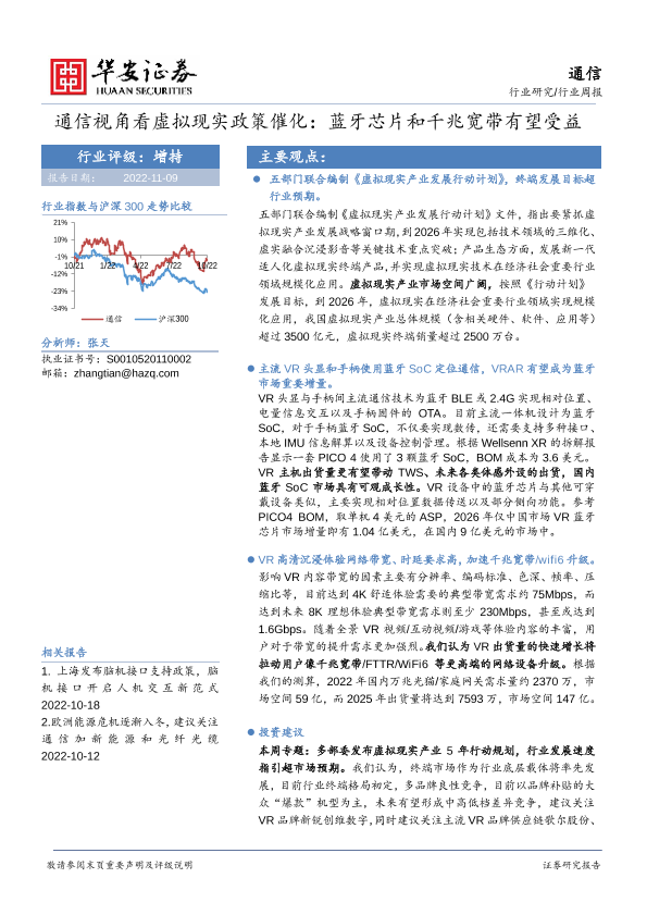 【华安证券】【20221109】通信行业周报:通信视角看虚拟现实政策催化,蓝牙芯片和千兆宽带有望受益-20页