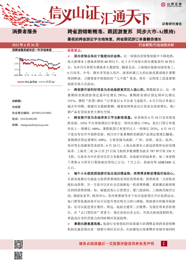 【山西证券】【20220626】消费者服务:跨省游熔断精准、跟团游复苏-4页