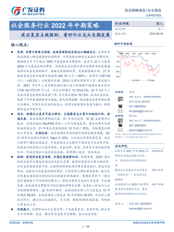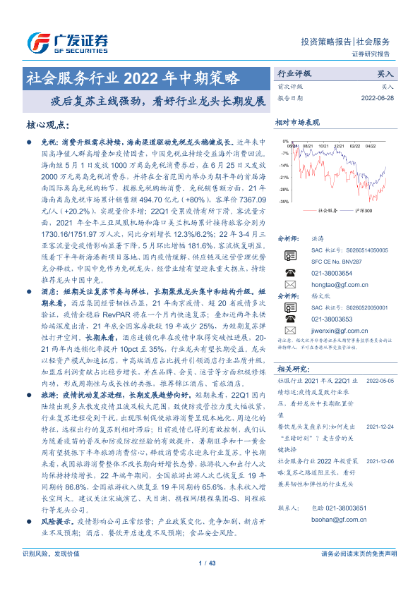 【广发证券】【20220628】社会服务行业2022年中期策略:疫后复苏主线强劲,看好行业龙头长期发展-43页