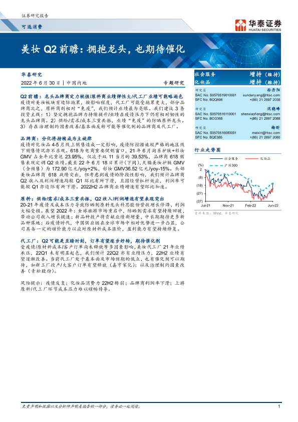 【华泰证券】【20220630】美妆Q2前瞻:拥抱龙头,也期待催化-5页