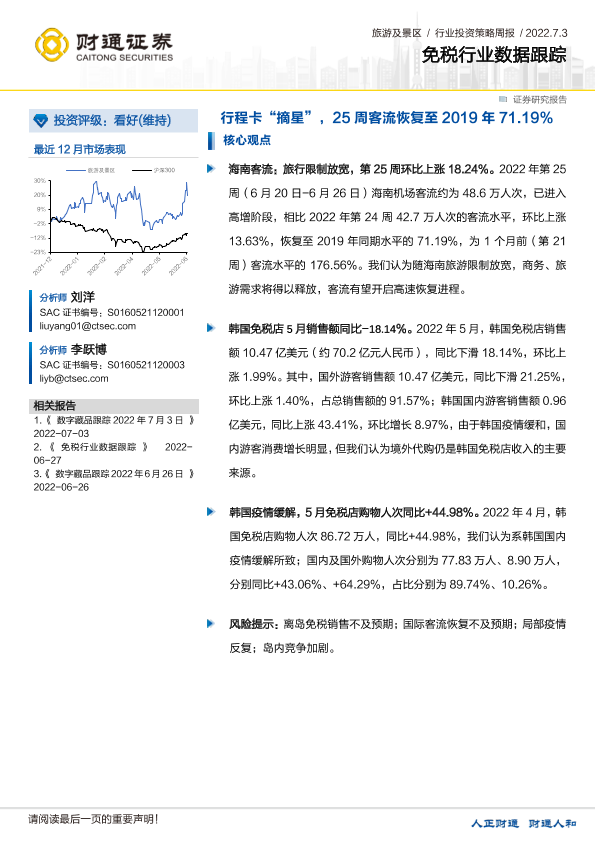 【财通证券】【20220703】行程卡“摘星”,25周客流恢复至2019年71.19%-12页