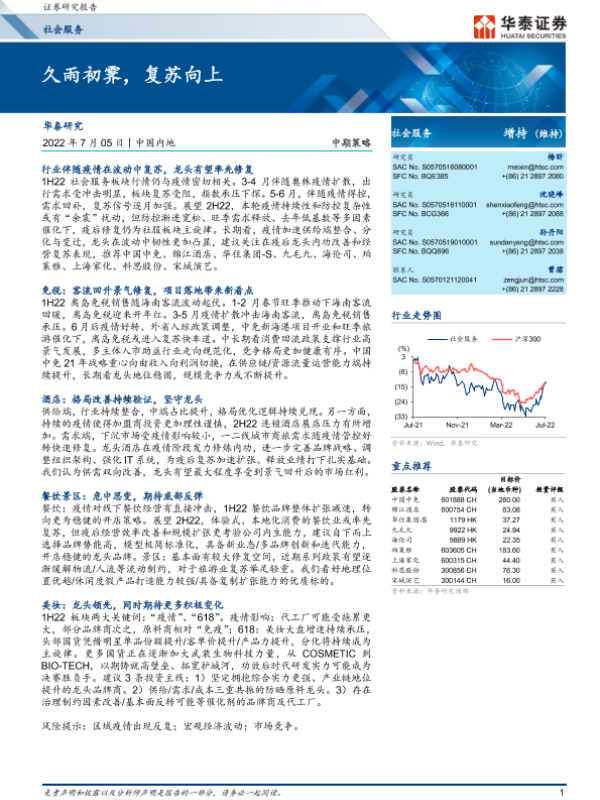 【华泰证券】【20220705】社会服务中期策略:久雨初霁,复苏向上-25页