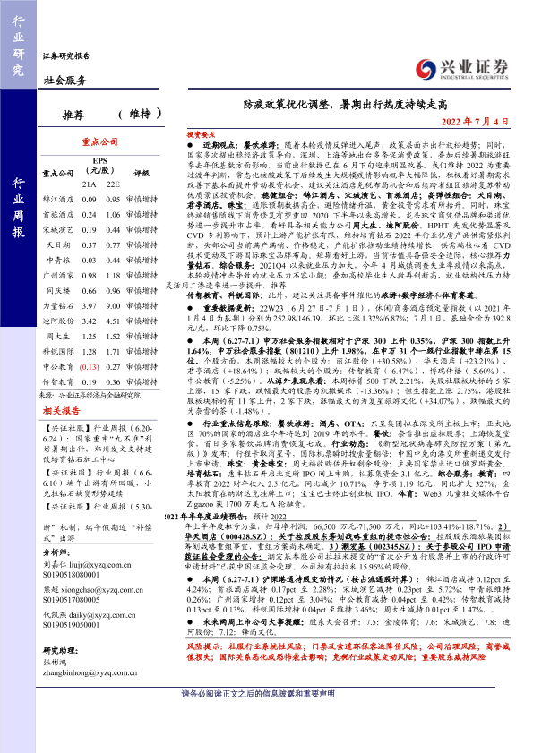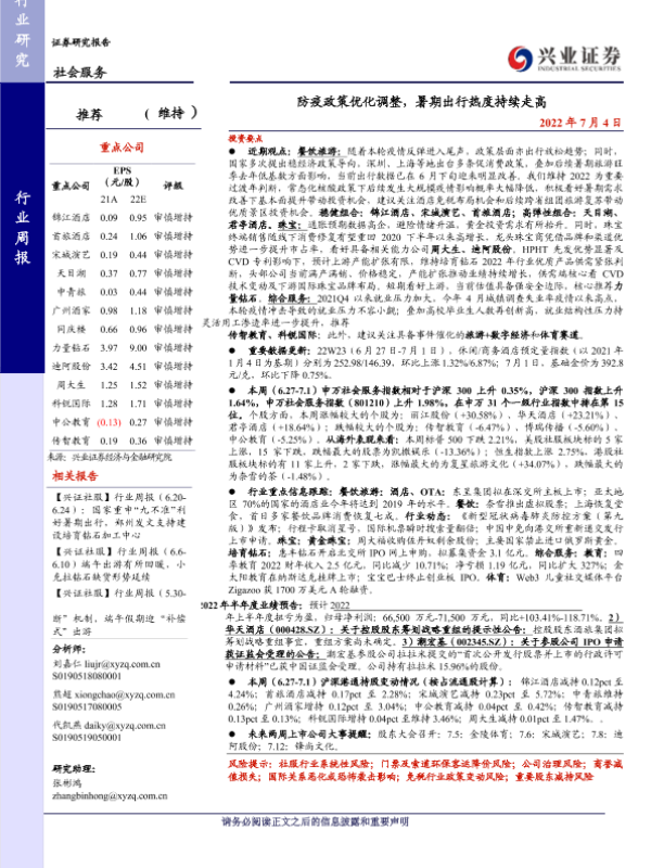 【兴业证券】【20220704】防疫政策优化调整,暑期出行热度持续走高-16页