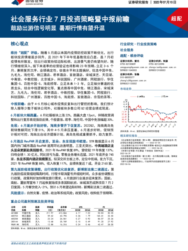 【国信证券】【20220710】社会服务行业7月投资策略暨中报前瞻:鼓励出游信号明显 暑期行情有望升温-20页
