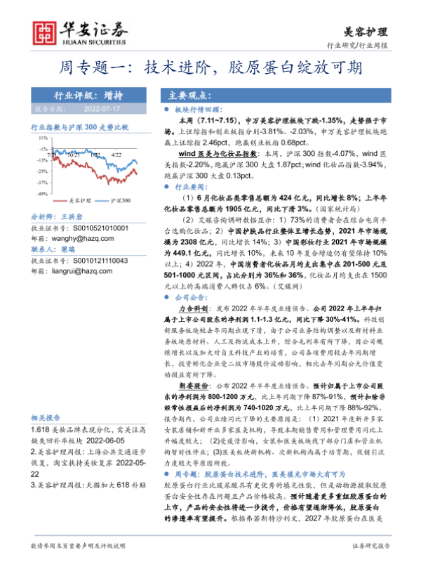 【华安证券】【20220717】技术进阶,胶原蛋白绽放可期-18页