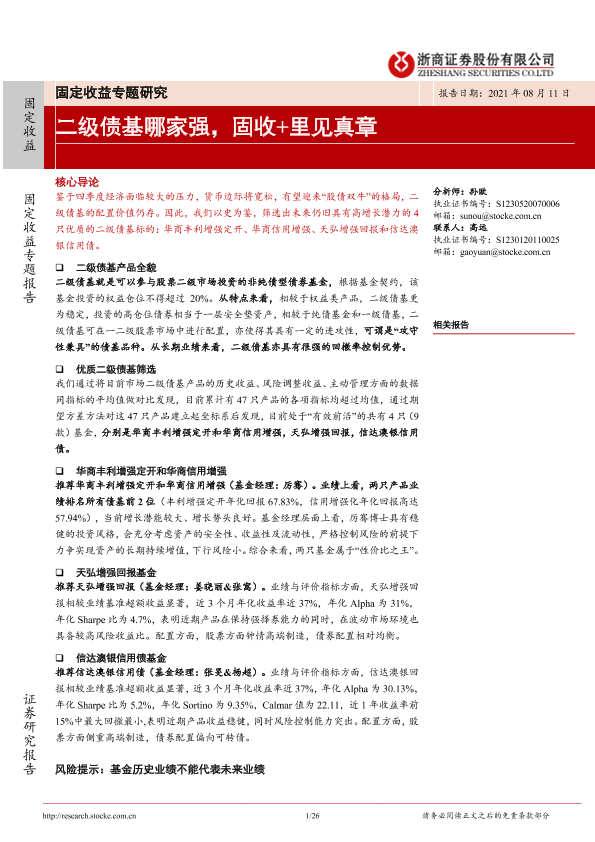 【浙商证券】【20210811】固定收益专题研究:二级债基哪家强,固收+里见真章-25页
