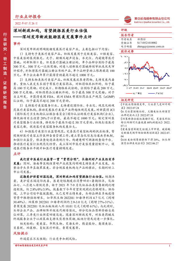 【东亚前海证券】【20220726】深圳发布新政鼓励医美发展事件点评-3页
