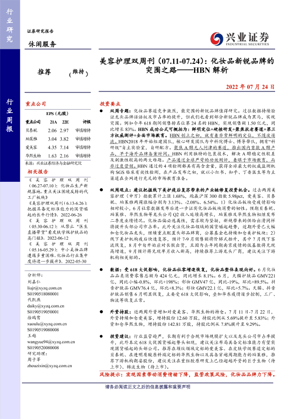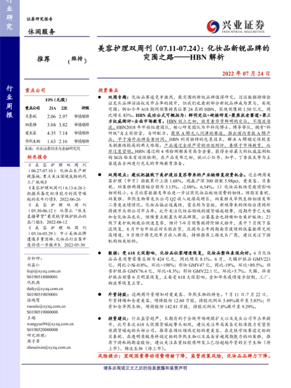 【兴业证券】【20220724】美容护理双周刊:化妆品新锐品牌的突围之路——HBN解析-18页