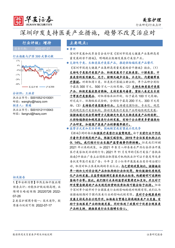 【华安证券】【20220727】深圳印发支持医美产业措施,趋势不改灵活应对-3页