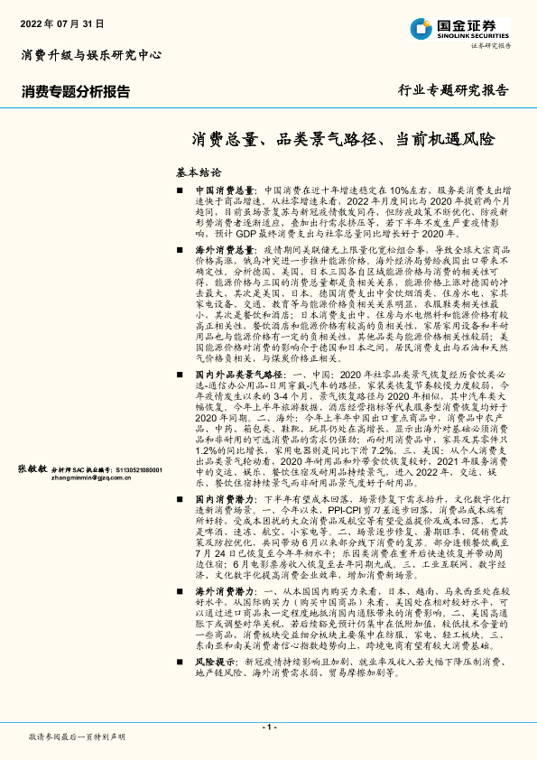 【国金证券】【20220731】消费专题分析报告:消费总量、品类景气路径、当前机遇风险-21页