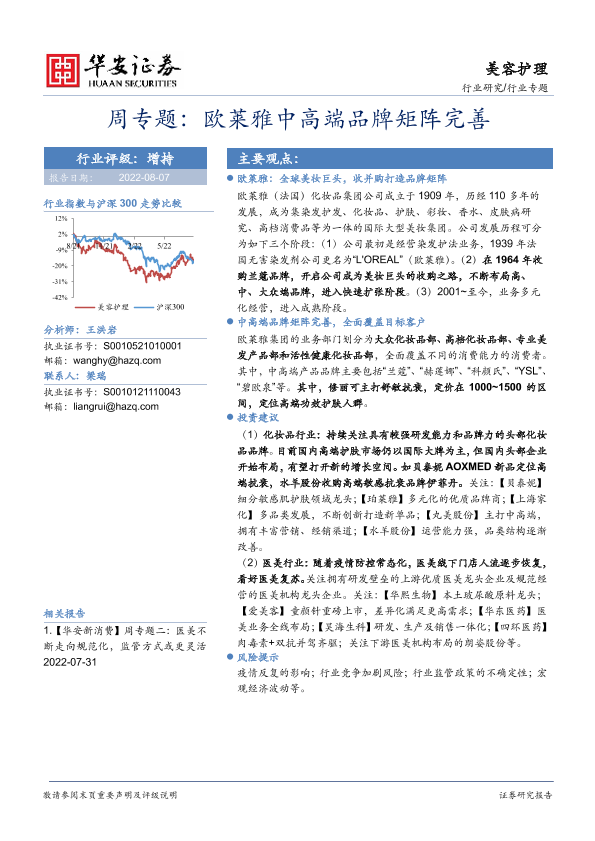 【华安证券】【20220807】美容护理周专题:欧莱雅中高端品牌矩阵完善-10页