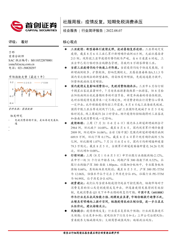 【首创证券】【20220807】社服周报:疫情反复,短期免税消费承压-11页