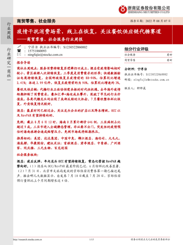【浙商证券】【20220807】商贸零售、社会服务行业周报:疫情干扰消费场景,线上在恢复,关注餐饮供应链代糖赛道-15页