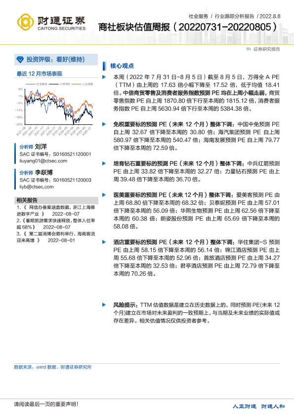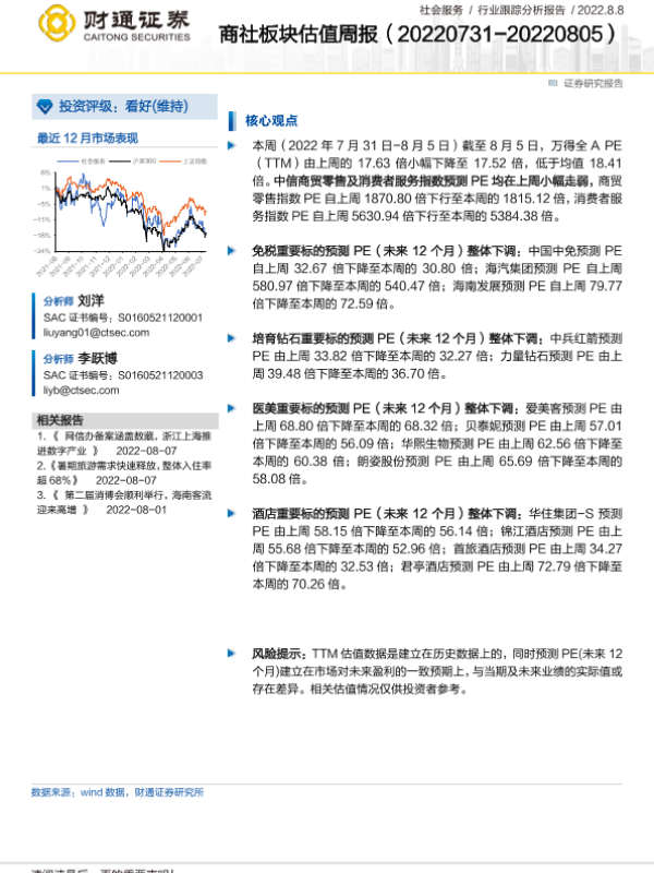 【财通证券】【20220808】社会服务行业跟踪分析报告:商社板块估值周报-38页