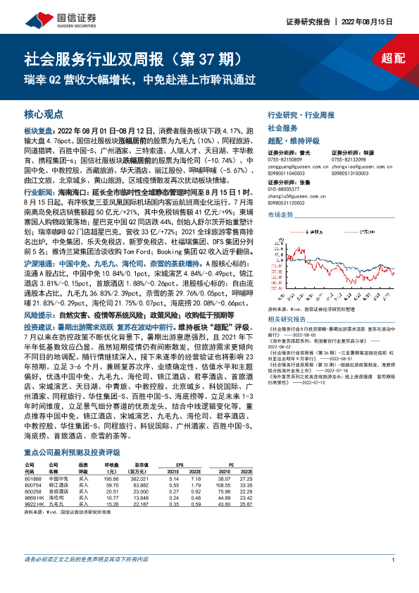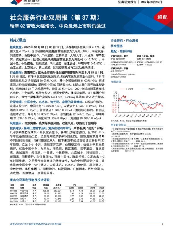 【国信证券】【20220815】社会服务行业双周报:瑞幸Q2营收大幅增长,中免赴港上市聆讯通过-12页