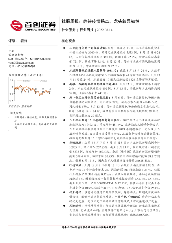 【首创证券】【20220814】社服周报:静待疫情拐点,龙头彰显韧性-13页