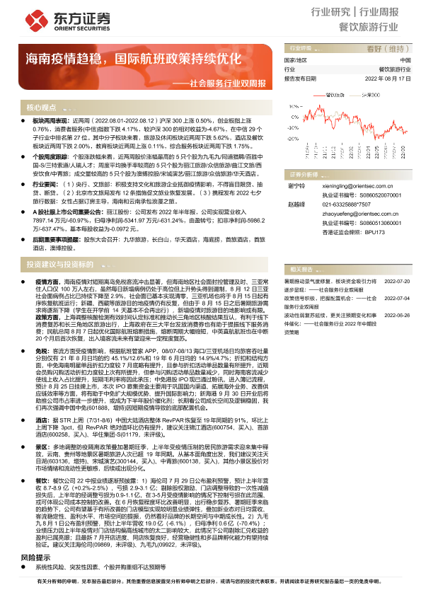 【东方证券】【20220817】社会服务行业双周报:海南疫情趋稳,国际航班政策持续优化-13页