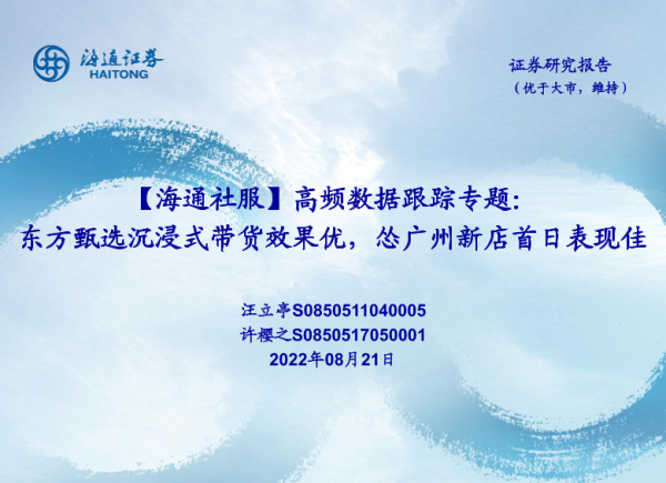 【海通证券】【20220821】高频数据跟踪专题:东方甄选沉浸式带货效果优,怂广州新店首日表现佳-17页