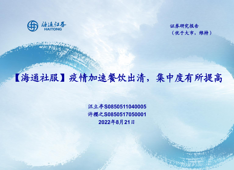 【海通证券】【20220821】疫情加速餐饮出清,集中度有所提高-18页