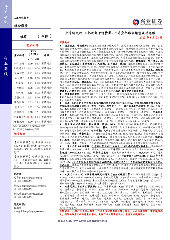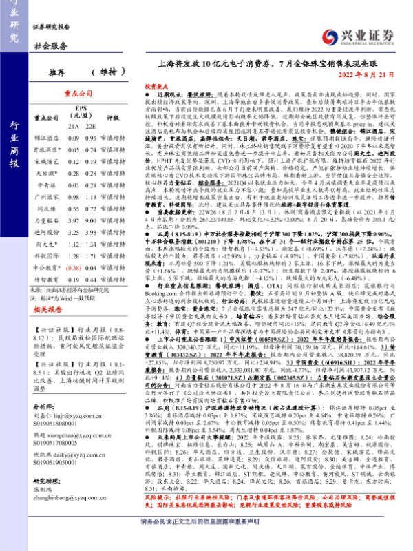 【兴业证券】【20220821】上海将发放10亿元电子消费券,7月金银珠宝销售表现亮眼-17页