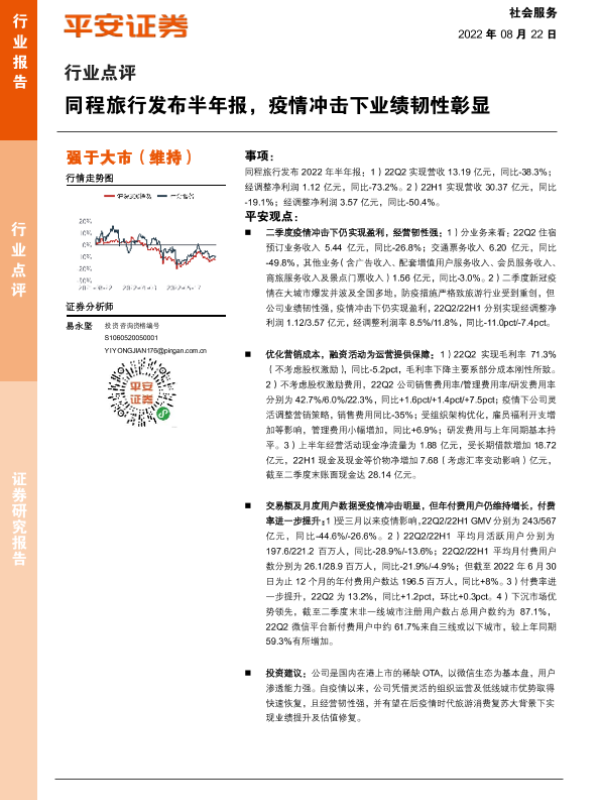 【平安证券】【20220822】社会服务行业点评:同程旅行发布半年报,疫情冲击下业绩韧性彰显-3页