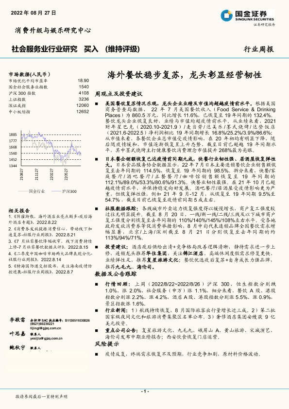 【国金证券】【20220827】社会服务业行业研究:海外餐饮稳步复苏,龙头彰显经营韧性-16页