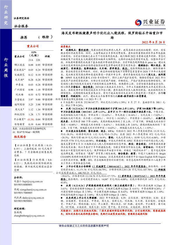 【兴业证券】【20220828】海关发布新版健康声明卡优化出入境流程,俄罗斯钻石开始重归市场-20页