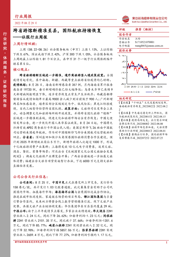 【东亚前海证券】【20220829】社服行业周报:跨省游熔断精准至县,国际航班持续恢复-18页