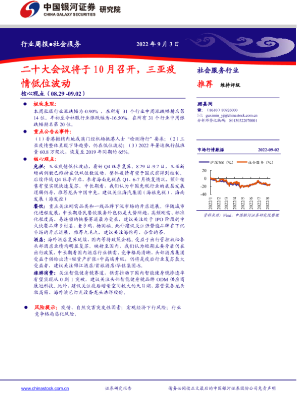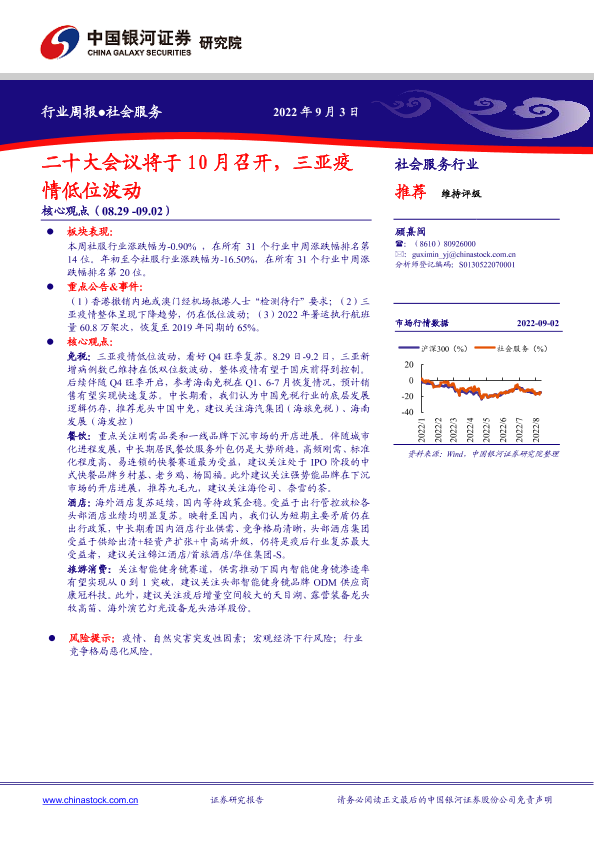 【银河证券】【20220903】社会服务行业周报:二十大会议将于10月召开,三亚疫情低位波动-14页