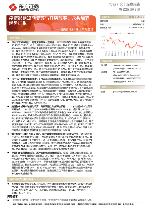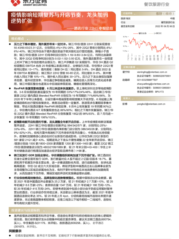 【东方证券】【20220906】酒店行业22H1中报总结:疫情影响短期复苏与开店节奏,龙头加码逆势扩张-15页
