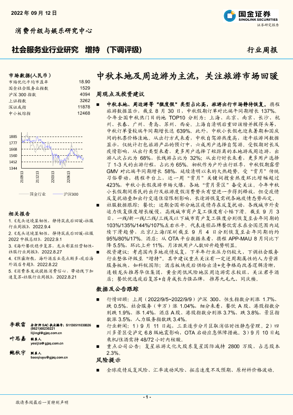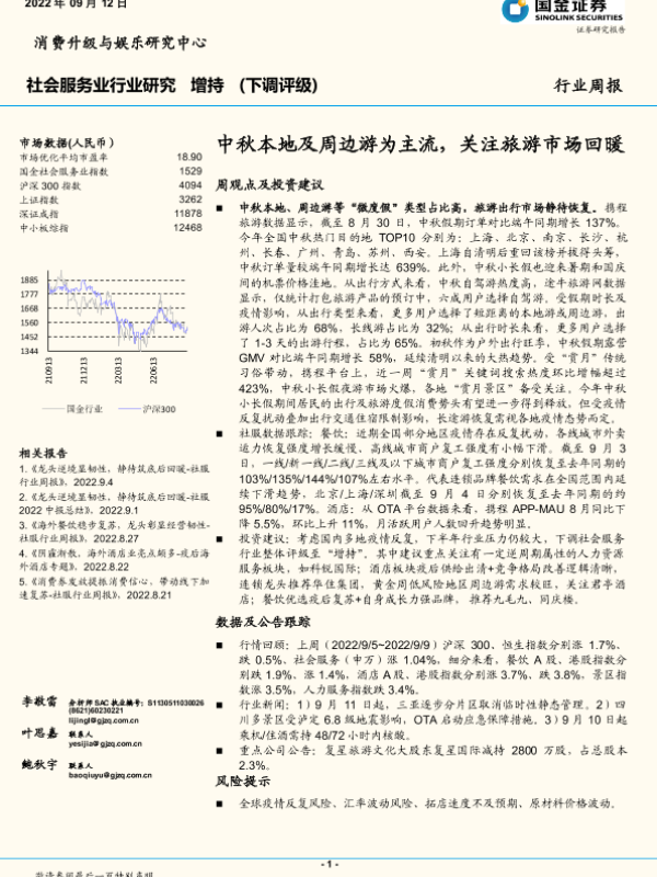 【国金证券】【20220912】社会服务业行业研究:中秋本地及周边游为主流,关注旅游市场回暖-17页