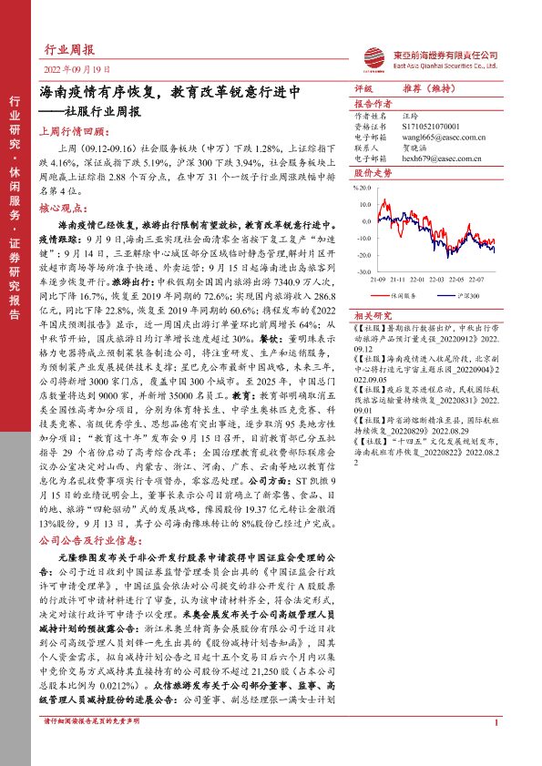 【东亚前海证券】【20220919】社服行业周报:海南疫情有序恢复,教育改革锐意行进中-11页