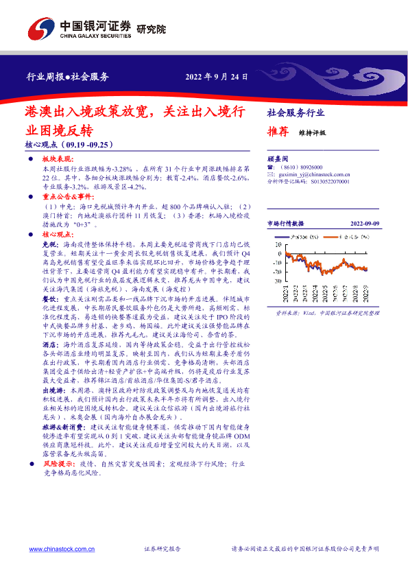 【银河证券】【20220924】社会服务行业周报:港澳出入境政策放宽,关注出入境行业困境反转-15页