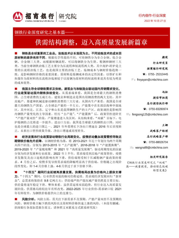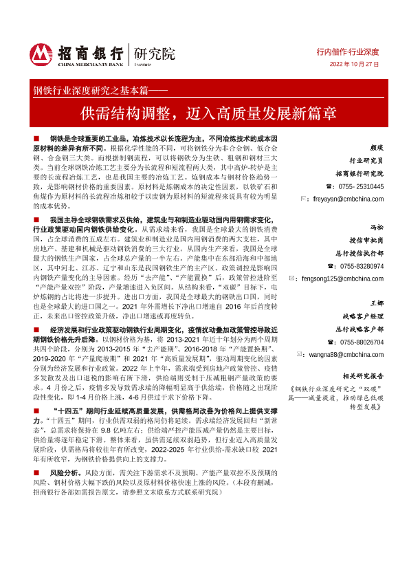 【招商银行】【20221027】钢铁行业深度研究之基本篇——供需结构调整,迈入高质量发展新篇章-32页