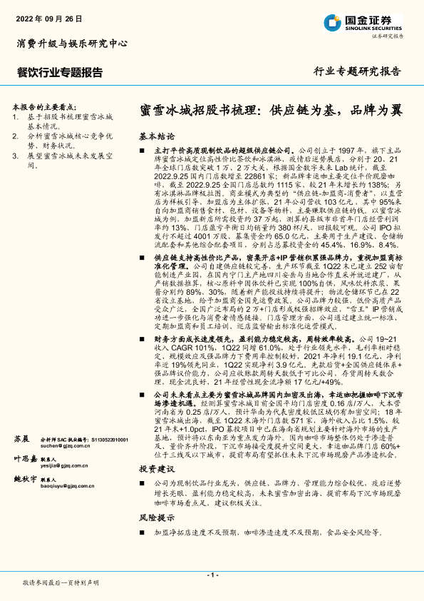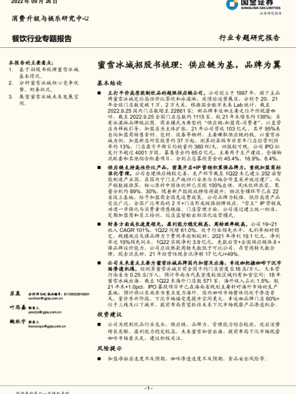 【国金证券】【20220926】餐饮行业专题报告:蜜雪冰城招股书梳理:供应链为基,品牌为翼-20页