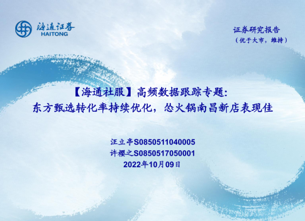 【海通证券】【20221009】高频数据跟踪专题:东方甄选转化率持续优化,怂火锅南昌新店表现佳-18页