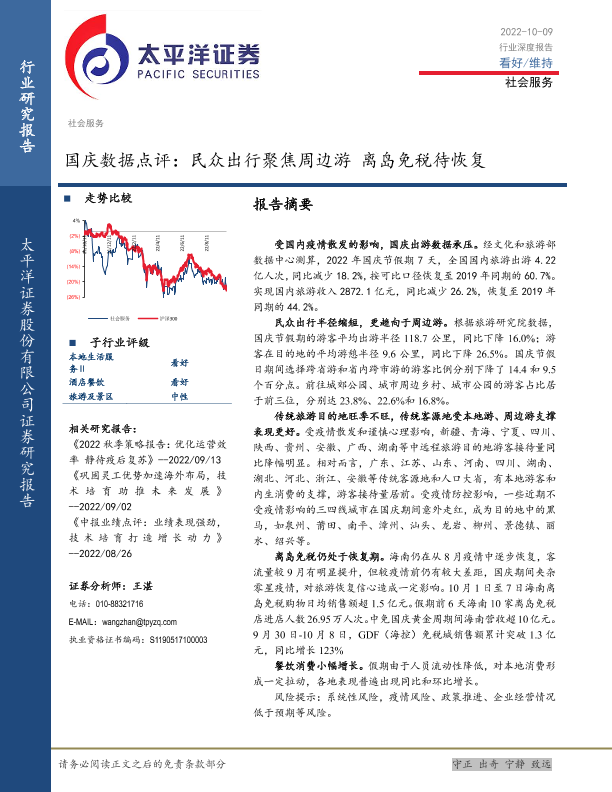 【太平洋证券】【20221009】社会服务国庆数据点评:民众出行聚焦周边游 离岛免税待恢复-11页