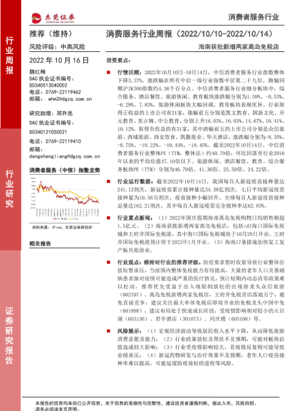 【东莞证券】【20221016】消费服务行业周报:海南获批新增两家离岛免税店-10页