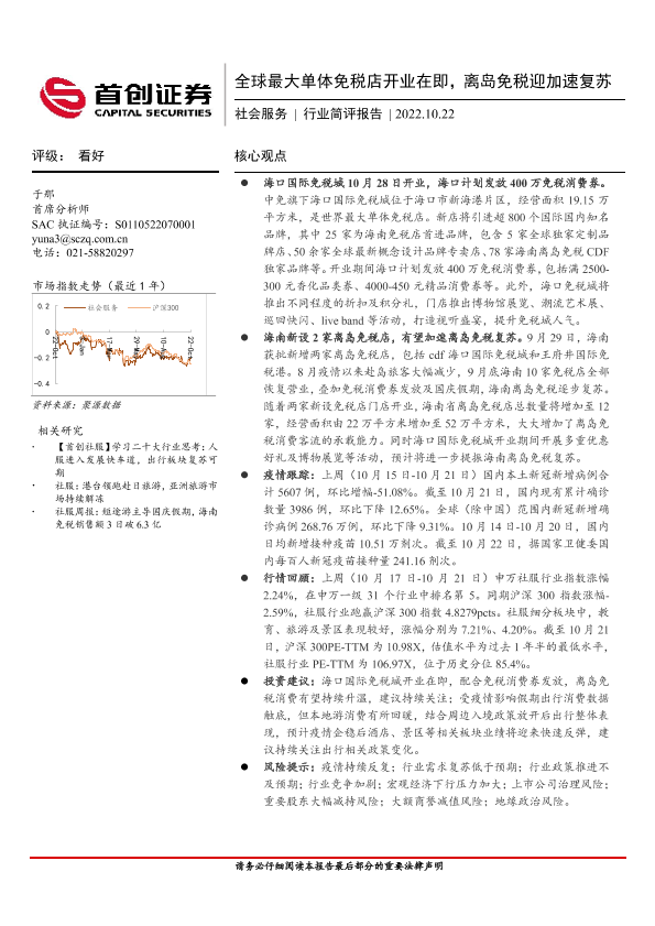 【首创证券】【20221022】全球最大单体免税店开业在即,离岛免税迎加速复苏-12页