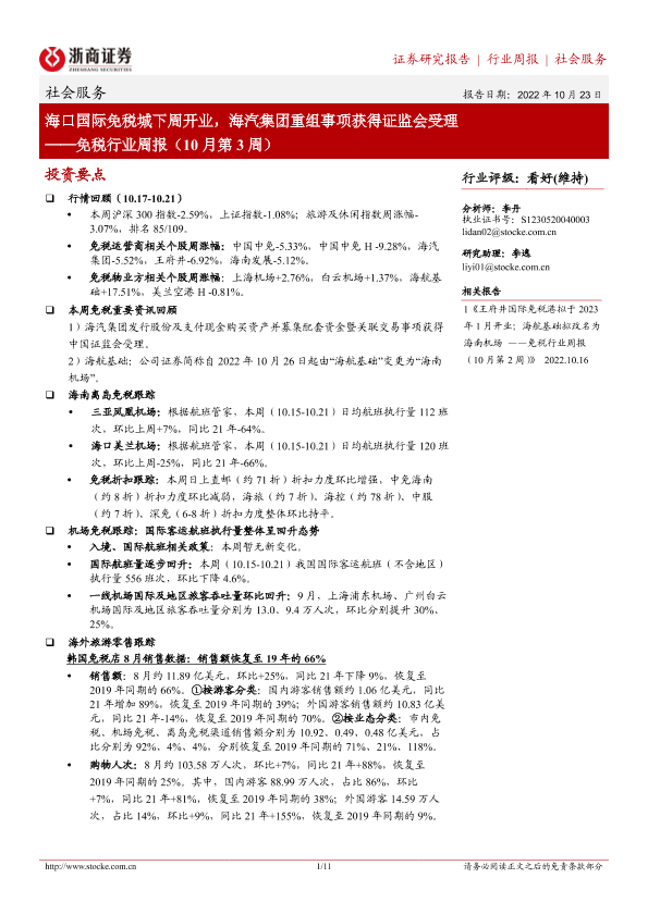 【浙商证券】【20221023】海口国际免税城下周开业,海汽集团重组事项获得证监会受理-11页