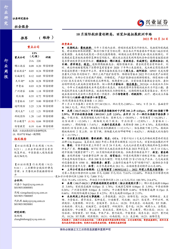【兴业证券】【20221024】10月国际航班量创新高,丽笙加速拓展欧洲市场-15页