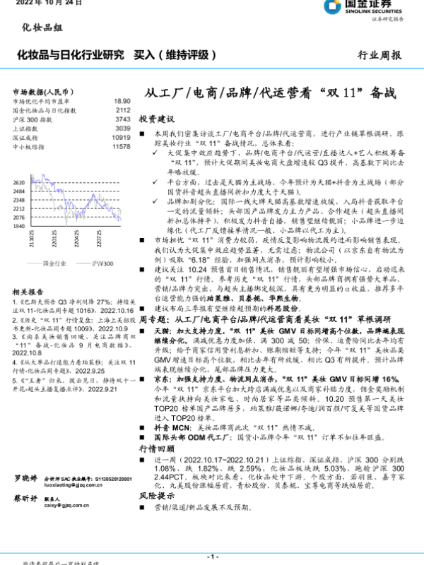 【国金证券】【20221024】化妆品与日化行业研究:从工厂 电商 品牌 代运营看“双11”备战-10页